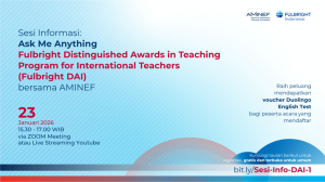 Acara ini gratis dan terbuka untuk umum. Mari bergabung via Zoom Meeting atau Live streaming di YouTube AMINEF Fulbright Indonesia.