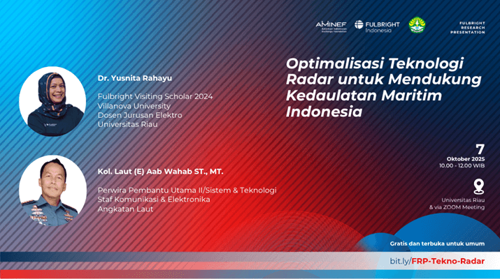 – Dr. Yusnita Rahayu (Universitas Riau | Fulbright Visiting Scholar 2024, Villanova University), memaparkan optimalisasi antena array dalam peningkatan kinerja sistem radar