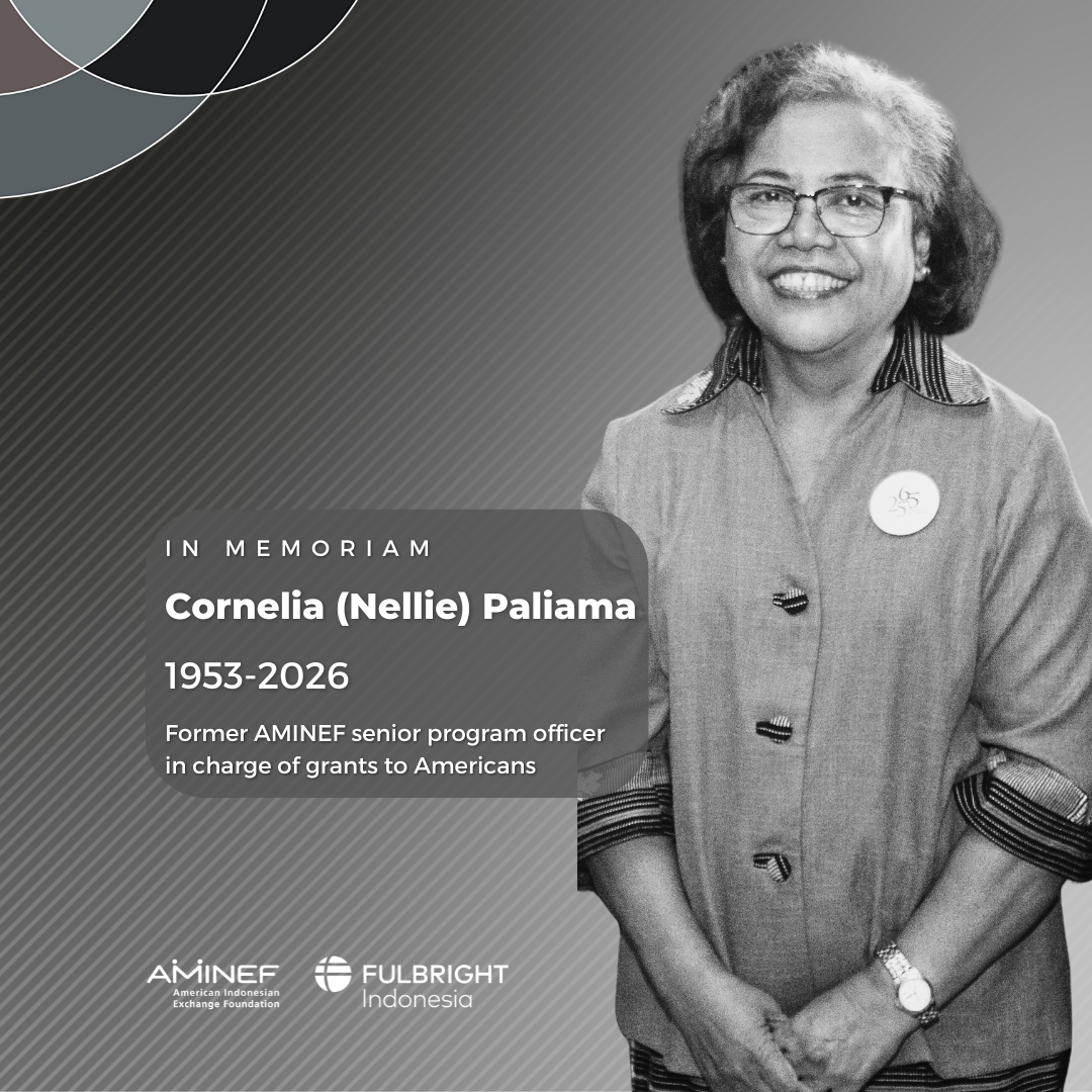 We are deeply saddened by the passing of Cornelia Paliama, affectionately known as Ibu Nellie, at the age of 72, in Jakarta. Ibu Nellie was a central figure in AMINEF and the Fulbright program in Indonesia. She began her work with the Fulbright program in its early years, first as support staff at the US.. Read More.