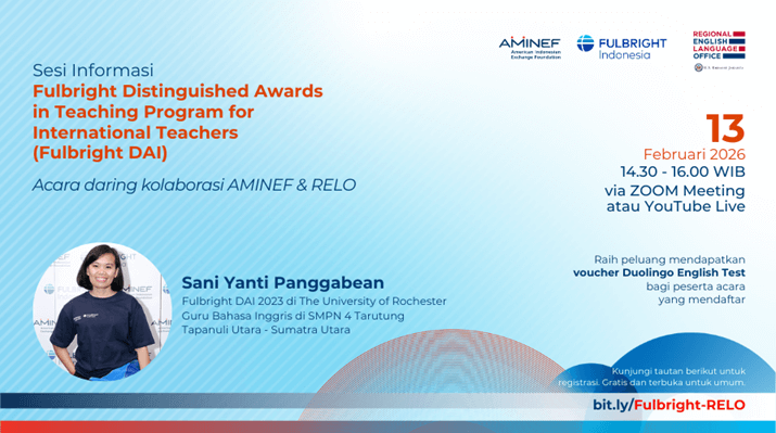 Guru dan tenaga kependidikan Indonesia – Ingin mengenal lebih dekat program beasiswa Fulbright DAI? Mari hadir di acara daring hasil kolaborasi AMINEF & RELO berikut ini. Dengarkan info administratif program dari AMINEF, serta cerita pengalaman, manfaat, dan tips melamarnya dari alumni Sani Yanti Panggabean. Hari: Jumat, 13 Februari 2026 Pukul: 14.30 – 16.00 WIB Lokasi:.. Read More.