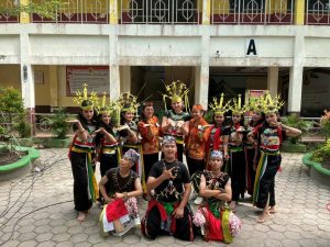 Christina Stoll, ETA at SMAN 2 Palangkaraya, dove headfirst into preparations for her school’s anniversary upon her arrival. Leading up to the anniversary, students participated in SMART Fest, where they demonstrated their entrepreneurial spirit by hosting a student-led pasar (market) every evening and planning for the school anniversary on October 28. Christina was asked to join a Dayak dance performance, practicing with students between teaching her classes and learning the dance in just a week and a half. Christina learned a simplified version of the choreography from the dance team and their teacher, Ibu Rini, thereby improving her Indonesian skills. In contrast, the dance team worked together and improved their English skills. Learning a different style of dance in a different language while navigating a different culture was no easy feat. Still, through teamwork and open-mindedness, the event was a success, and students were excited to see their new teacher participating in their culture.