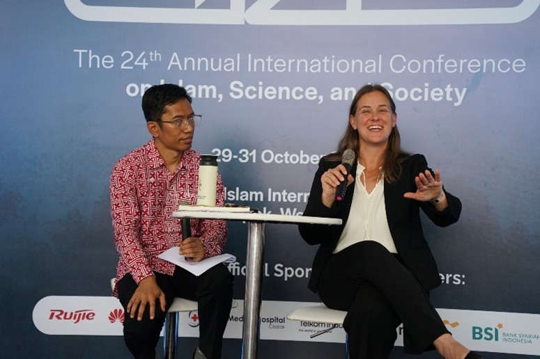 Dr. Sirojuddin Arif and Dr. Ashley Nickels discussing academic publishing at the AICIS conference, October 2025